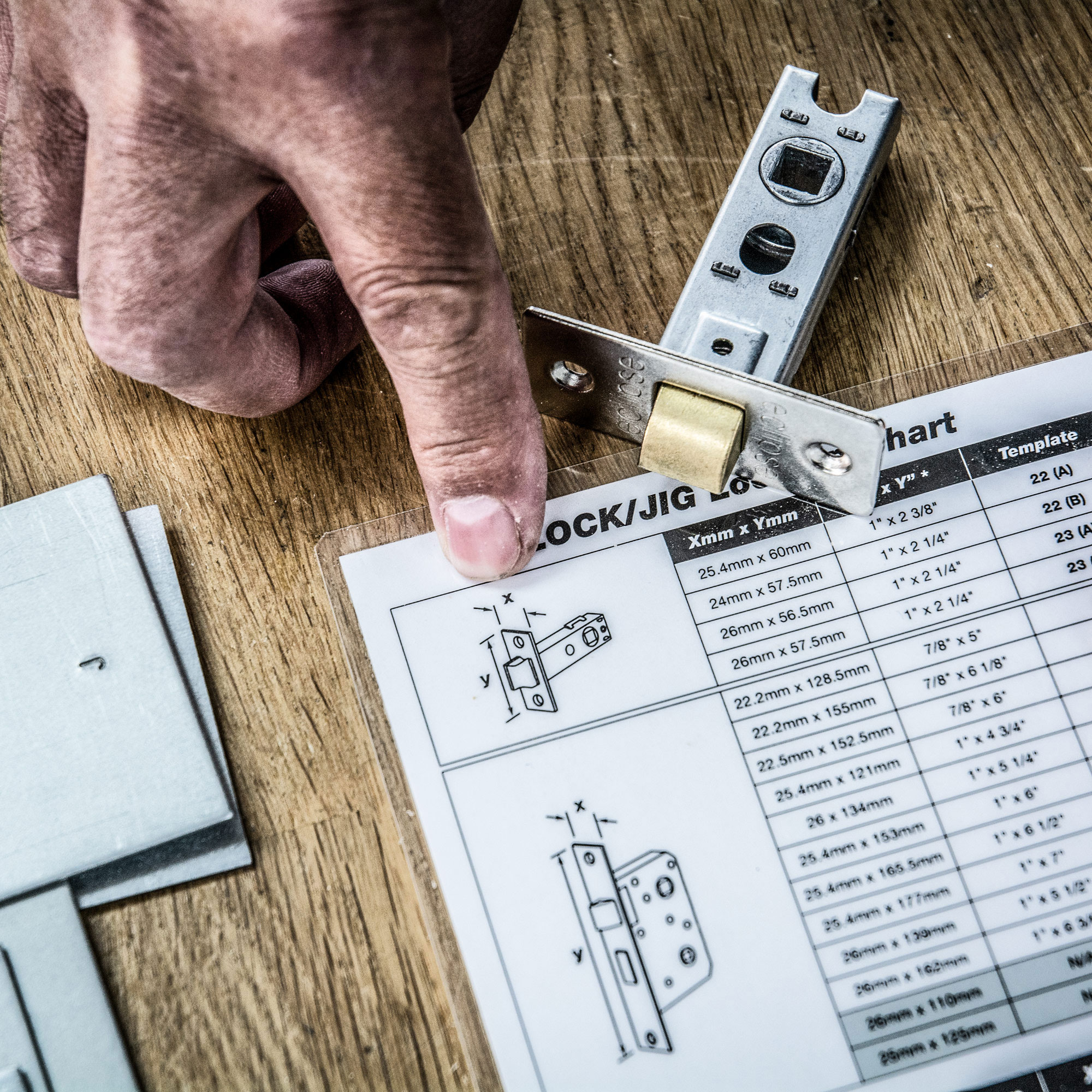 Reference Chart provides quick reference between templates and lock sizes